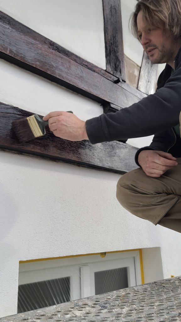 Unser Instandhaltungskonzept: Kalkputz und Mineralfarbe am Fachwerk